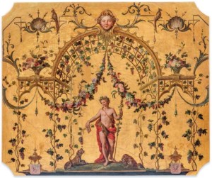 Le catalogue de la vente indique : « Les trois panneaux que nous présentons sont à considérer comme le témoignage précieux d’un ensemble plus important qui devait orner tout un salon doré ou petit cabinet peut-être voulu par Philippe de Vendôme (1712-1727) pour le pavillon de Clichy lors de son réaménagement effectué entre 1699 et 1702 dans le plus pur raffinement emblématique du commencement du XVIIIème siècle. Il faut s’imaginer une pièce entièrement consacrée aux Saisons et l’Art du Jardin comme en témoigne l’iconographie de nos panneaux. Après 1720, Louis Armand de Bourbon, prince de Conti (1695-1727) devint le nouveau propriétaire du pavillon de Clichy et y effectue de nombreux travaux et réaménagements, il nous est permit de penser que c’est à cette époque que les décors d’arabesques par «Audran du Luxembourg» furent remplacés à l’exception du plafond du grand salon d’honneur qui subsiste aujourd’hui. Il semblerait qu’après leur démantèlement, ces trois panneaux se soient très tôt (vers 1720) retrouvés dans la famille d’Harcourt« .