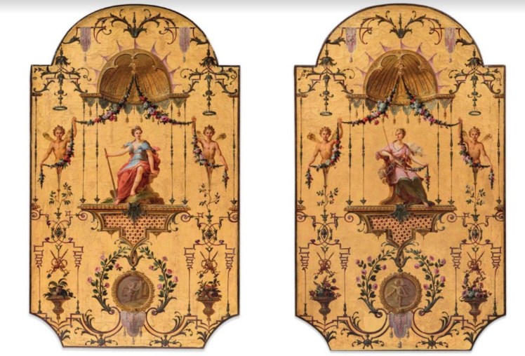 J’ajoute, et vous verrez où je veux en venir, que le plafond décoré du salon d’honneur du Pavillon a été réalisé par le peintre Claude Audran III (l’un des peintres de la famille royale, qui a notamment travaillé dans la chapelle de Versailles). Peu de ses réalisations sont parvenues jusqu’à nous. Mais, des pièces exceptionnelles ont été vendues aux enchères en mai 2019 par la maison Drouot : des parties du décor d’époque du Pavillon Vendôme ont été retrouvée dans une collection privée et mis en vente. Aucune image de ces panneaux de bois peints n’avaient été diffusées jusque là. Cette mise en vente est une aubaine car elle permet à tout un chacun de les découvrir.